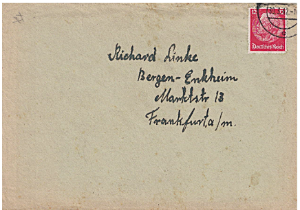 Envelope postmarked on March 30, 1942, addressed to Richard Linke in Frankfurt Germany