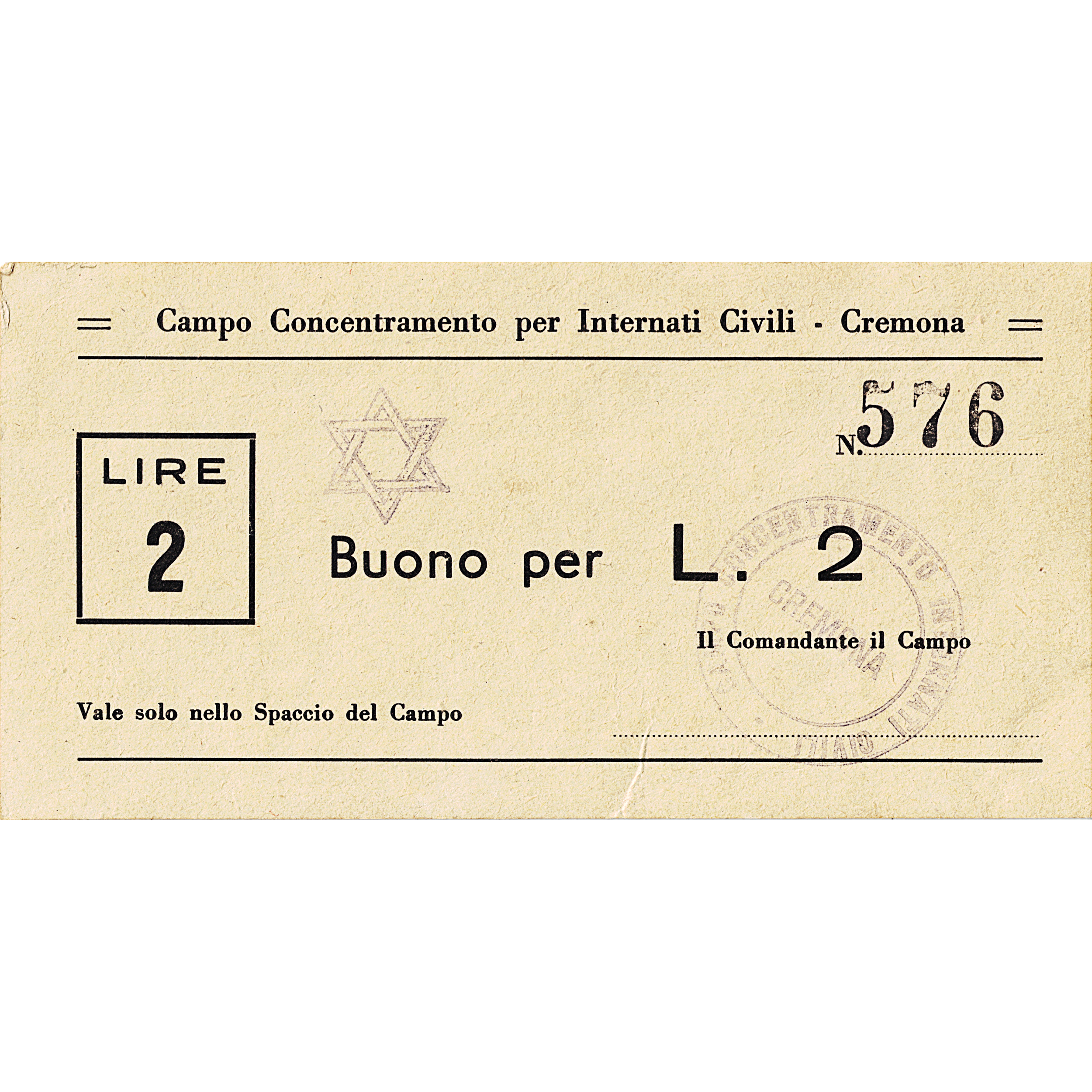 Coupons for Jewish prisoners at the Cremona, Italy “concentration camp for civilian internees”
